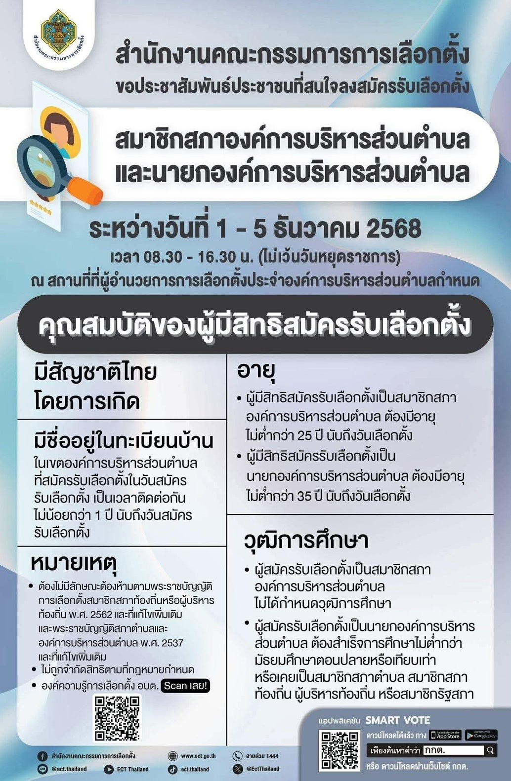สำนักงานคณะกรรมการการเลือกตั้ง ขอประชาสัมพันธ์ประชาชนที่สนใจลงสมัครรับเลือกตั้ง