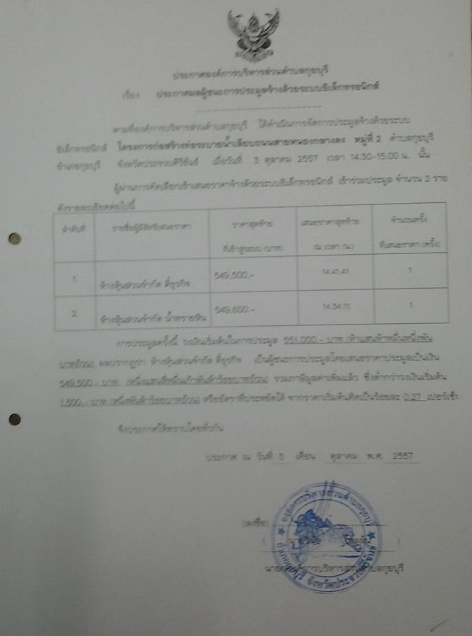 ประกาศผลผู้ชนะการประมูลจ้างด้วยระบบอิเล็กทรอนิกส์ โครงการก่อสร้างท่อระบายน้ำเลียบถนนสายหนองกลางดง