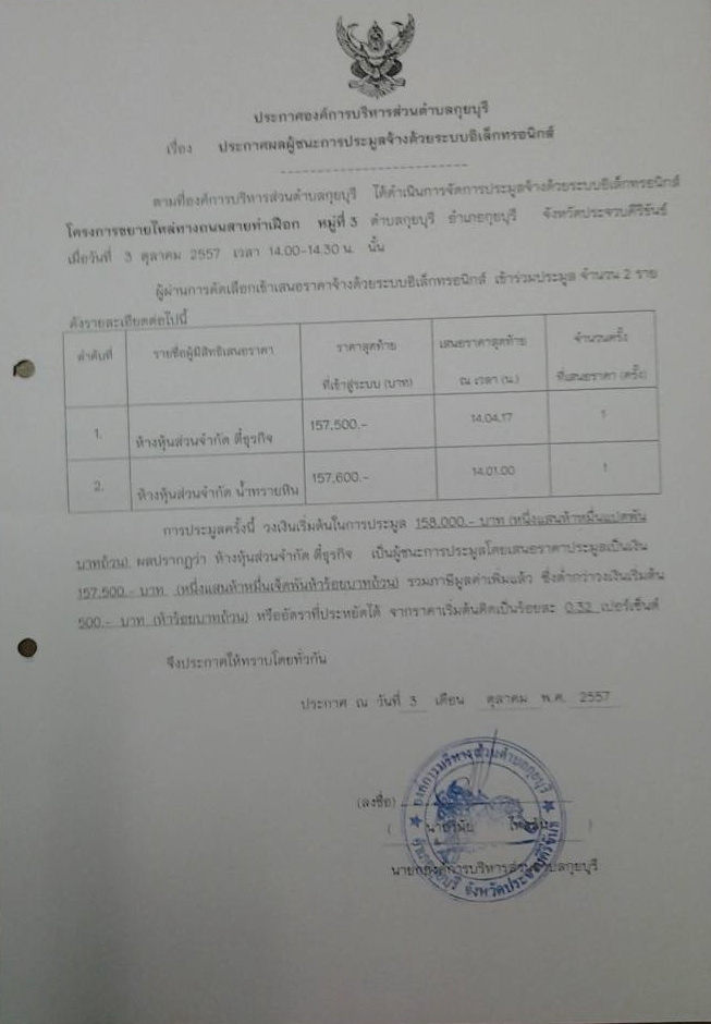 ประกาศผลผู้ชนะการประมูลจ้างด้วยระบบอิเล็กทรอนิกส์ โครงการขยายไหล่ทางถนนสายท่าเผือก หมู่ที่ 3